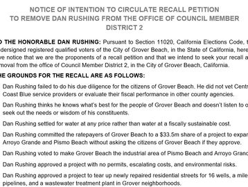 These are the reasons that the members of Grover H2O site for the recall of Councilmember Dan Rushing. This statement appears on the Intent to Circulate a Recall Petition, on the actual Recall Petition, and on as the Recall Ballot Statement. a description about this item