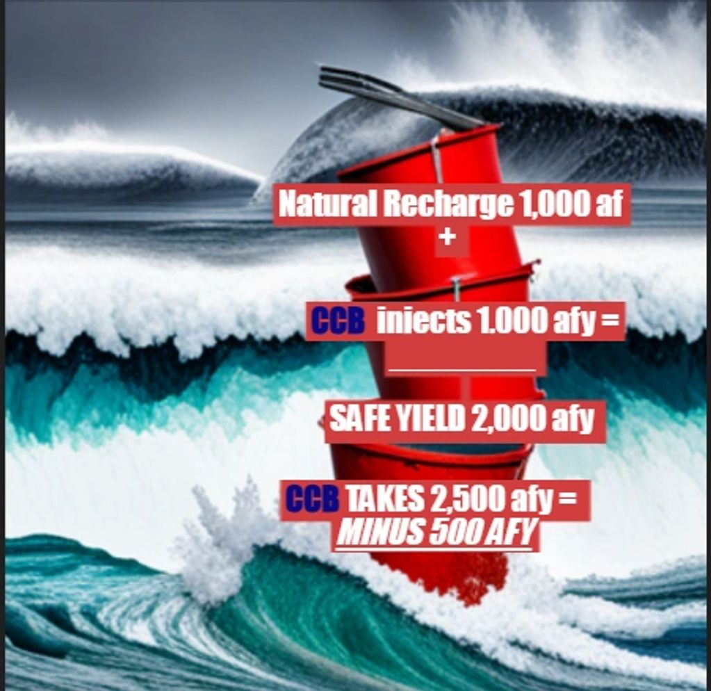 Central Coast Blue proposes to inject (in Phase 1 ($158m) +/- 1,000 acre-feet of purified wastewater into our aquifer every year. Natural recharge is about the same amount. But Central Coast Blue will draw 2,500 acre-feet a year from the aquifer, creating a 500 acre foot a year cumulative deficit. That's going by the Central Coast Blue estimates. Outside experts question whether there will be any
